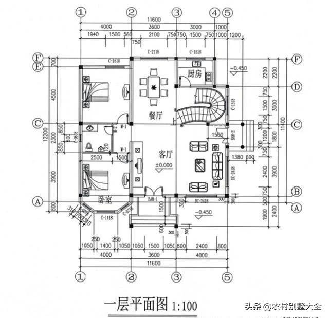 歐式二層小別墅,開間11.6米,進(jìn)深12.2米,占地面積140平左右,建筑高度7.1米,二層磚混結(jié)構(gòu),主體造價(jià)30萬左右。