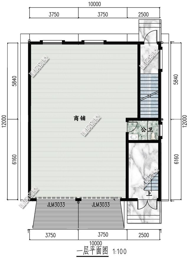 一層作為商鋪帶公衛(wèi),設(shè)計(jì)南北雙向樓梯進(jìn)入生活區(qū)。高度4.8米。