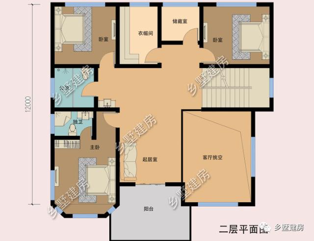 二層設計了三間臥室、起居室、儲藏間、衣帽間、公衛(wèi)、小陽臺。下方的主臥帶有獨衛(wèi),方便生活起居。公衛(wèi)為干濕分離設計,更加衛(wèi)生、方便。