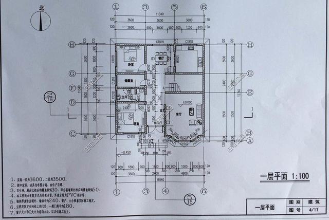 先來看一下建房圖紙,效果圖跟平面布局圖均是業(yè)主自行購買打印出來的。