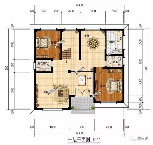 一層:入門就是玄關(guān),避免開門見戶;2個(gè)臥室,大小適宜;廚房餐廳相連,干凈衛(wèi)生;寬敞客廳,方便接待親友。