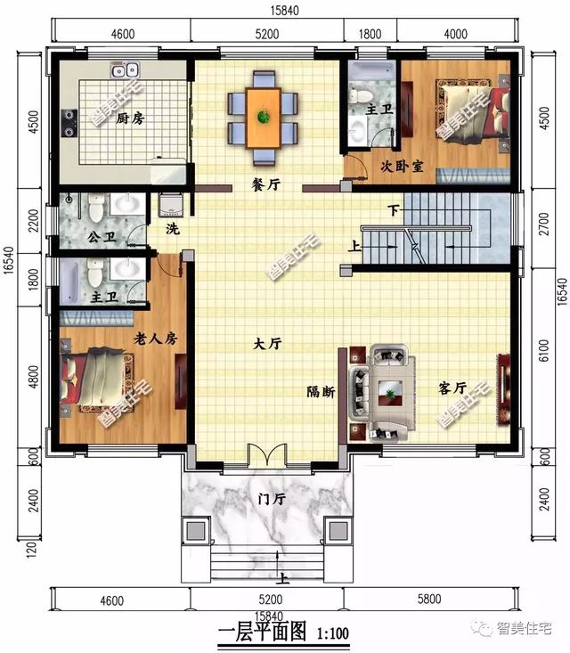 開(kāi)間:15.84米,進(jìn)深:16.54米