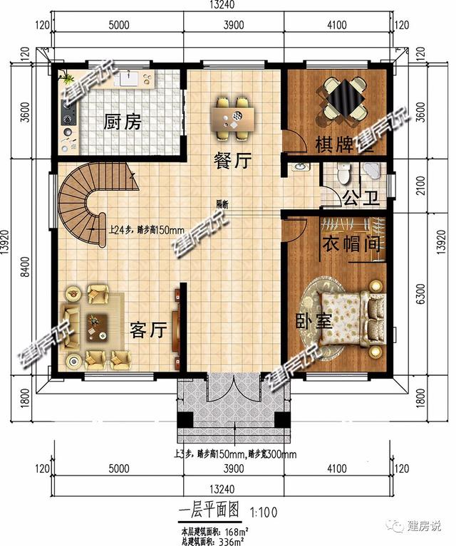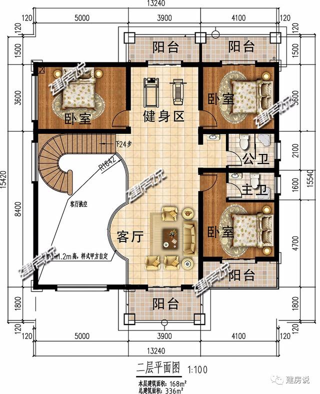 磚混結構,主體造價34-38萬,開間13.24米,進深13.92米,占地面積168平方米,建筑面積336平方米,建筑高度10.446米