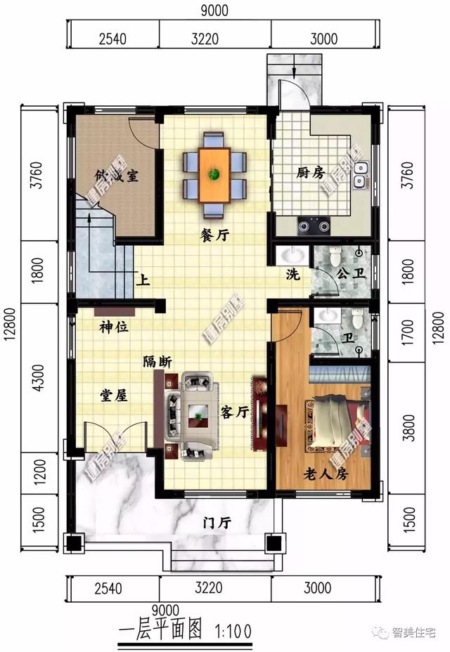 平面圖:一層設計有一間帶私衛(wèi)的老人房,入戶處設有堂屋便于擺放神龕,南北通透的戶型設計,樓梯下空間用于儲物;二層設有一間主臥和兩個次臥室,搭配室內(nèi)休閑小廳和室外生活陽臺空間。