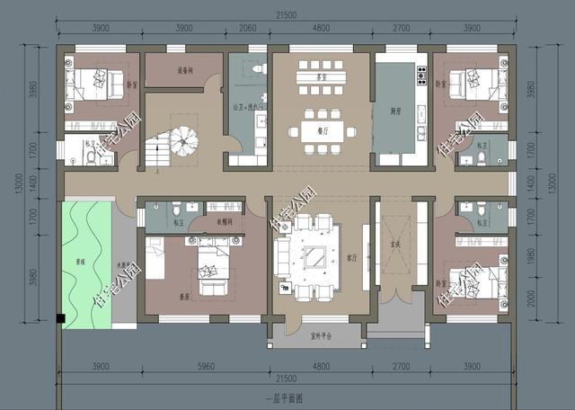這套戶型最大的亮點(diǎn),便是所有的臥室均帶有獨(dú)立衛(wèi)生間,首層四間,大主臥還有衣帽間設(shè)計(jì),提升居住舒適感。