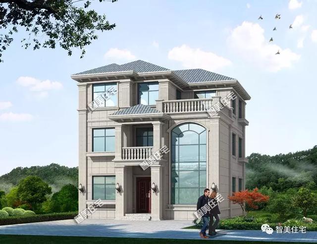 10.26×11.6米,配有落地大窗和方形的羅馬柱,外墻面用灰色的真石漆裝飾,屋面配有藍灰色的琉璃瓦,占地面積122.6平方米,建筑面積349.68平方米,磚混結(jié)構(gòu),主體造價32萬左右。