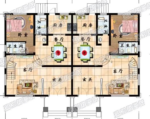 采用獨(dú)立入戶的設(shè)計(jì)方式,每一戶帶有9個(gè)臥室,還有書房等其他功能房,功能多樣齊全,對(duì)于農(nóng)村有兩兄弟的家庭來說,建造這樣的房子十分適合,既可以節(jié)省地皮空間,又能很好的利用資金,而且建造出來的效果很不錯(cuò)!