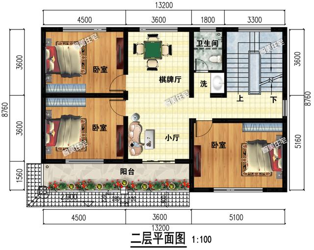二層高度3.6米,布局為:3晚上,棋牌廳,小廳,公衛(wèi),陽(yáng)臺(tái)。