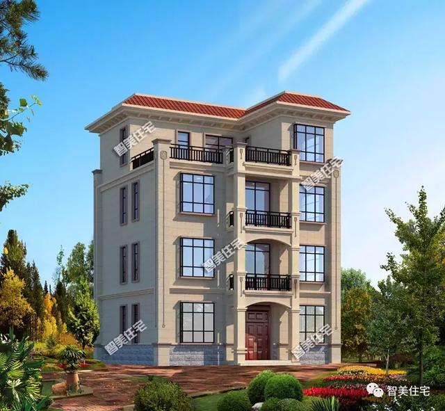 平屋頂設(shè)計的一款農(nóng)村自建房,搭配房型的羅馬柱設(shè)計,豪華大氣!