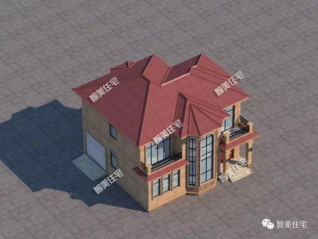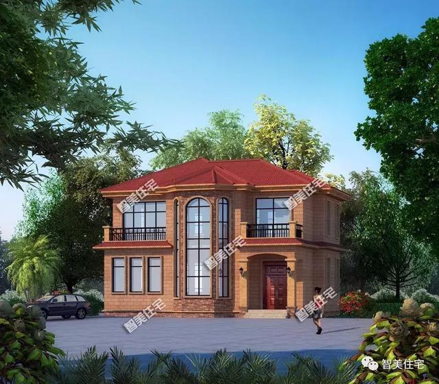 外觀說明:用紅色文化石、面磚和真石漆來裝飾,配以多邊形落地窗,造型大氣且室內采光性好。