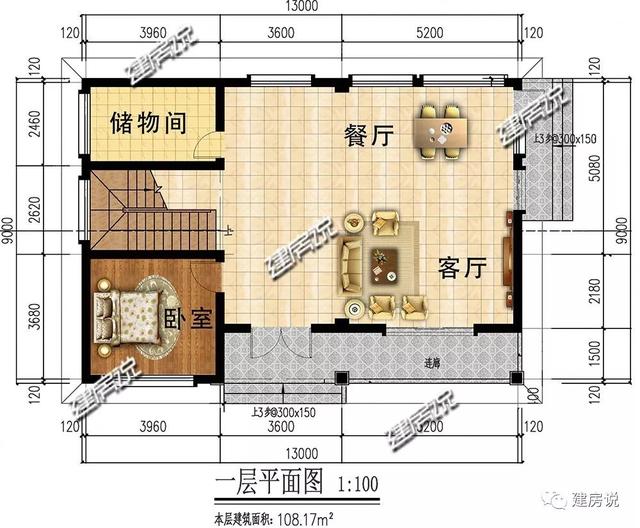 一層:客廳寬敞,方便接待好友;儲物間方便儲存家庭雜物;1間臥室可做老人房。
