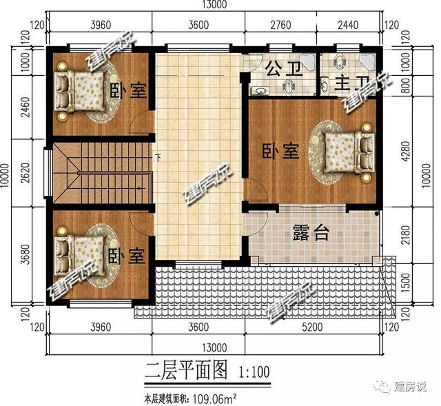二層:3間臥室,大小適宜;臥室外的露臺設計,可盡情欣賞鄉(xiāng)村靚麗景色。