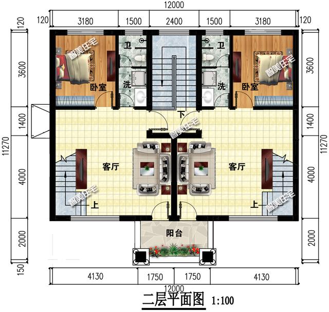 二層高度3.2米,布局單戶為客廳,臥室,公衛(wèi),陽臺(tái)。二層就完全是兩家單獨(dú)的空間了,上三層也是雙樓梯。