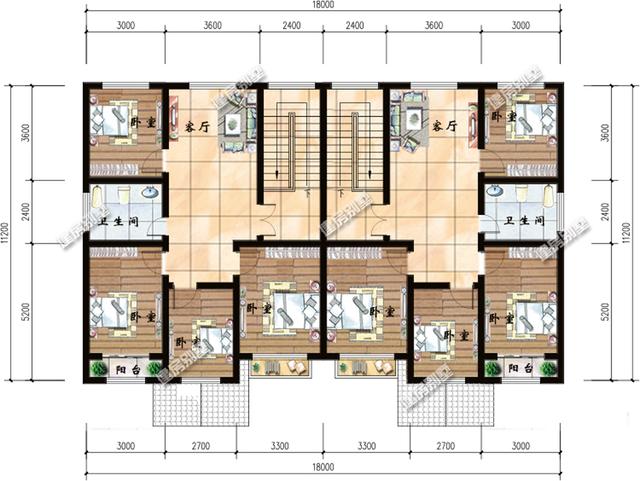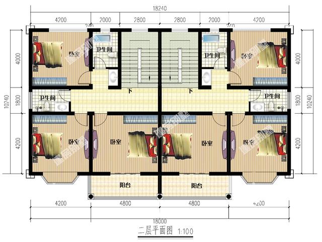 二層布局單戶(hù)設(shè)計(jì)4臥室,公衛(wèi),客廳。