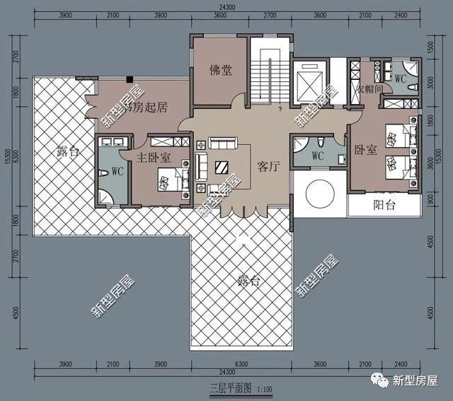 二樓臥室較多,并且自帶陽臺、衣帽間及衛(wèi)生間,來了朋友安排住下,貼心又方便。三樓比較特別的是,樓梯旁特意設(shè)置一間佛堂,不易受干擾。s型露臺連通客廳、臥室,個性又靈巧。