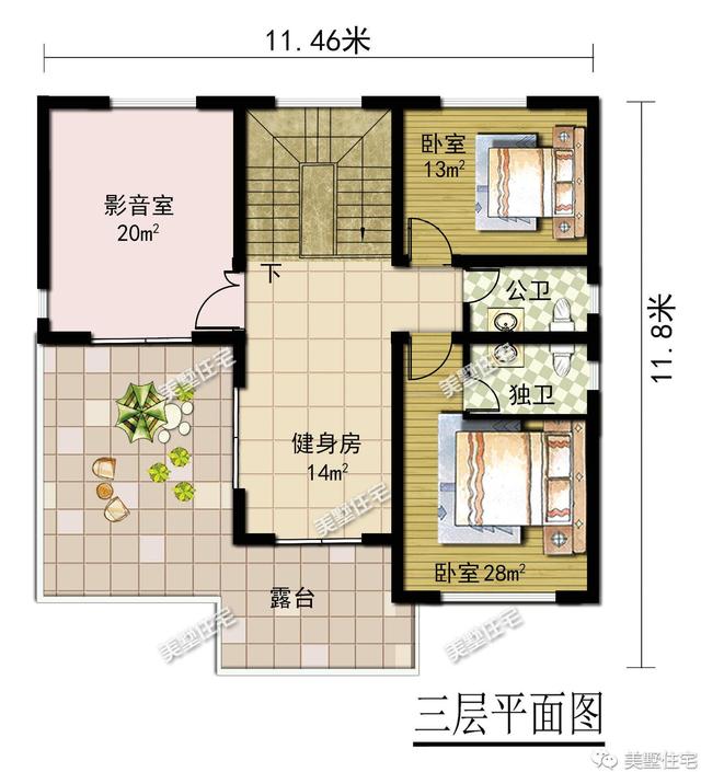 三層:健身房、2個(gè)臥室、2個(gè)洗手間、影音室、大露臺(tái)