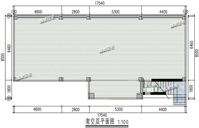 架空層地面以下2.7米,上一層采用室外樓梯設(shè)計(jì),并且下方設(shè)置一個(gè)小衛(wèi)生間。