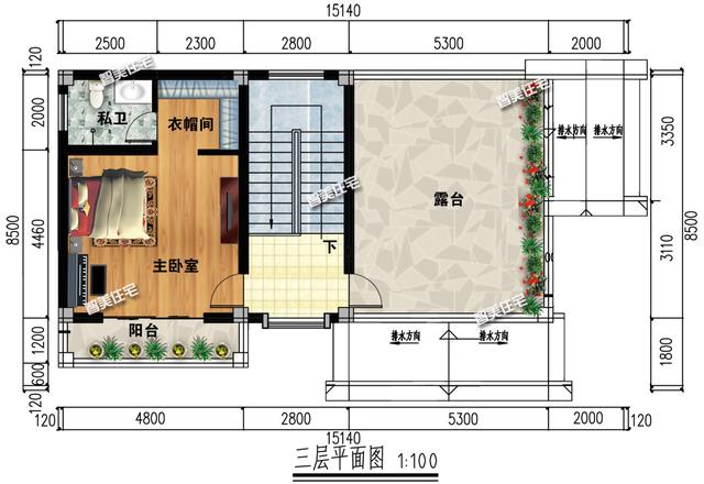 三層高度3.3米,布局為主臥+衣帽間+主衛(wèi),陽臺(tái),露臺(tái)。