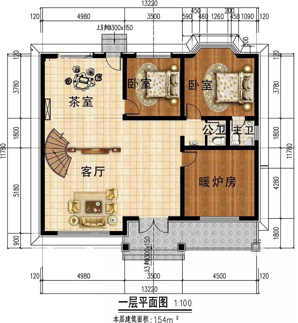 一層:入戶(hù)客廳,空間寬闊,活動(dòng)方便;2個(gè)臥室,家人居住舒適方便;閑時(shí)可以在茶室喝茶看書(shū),在暖爐房和家人烤火聊天,悠閑自在。