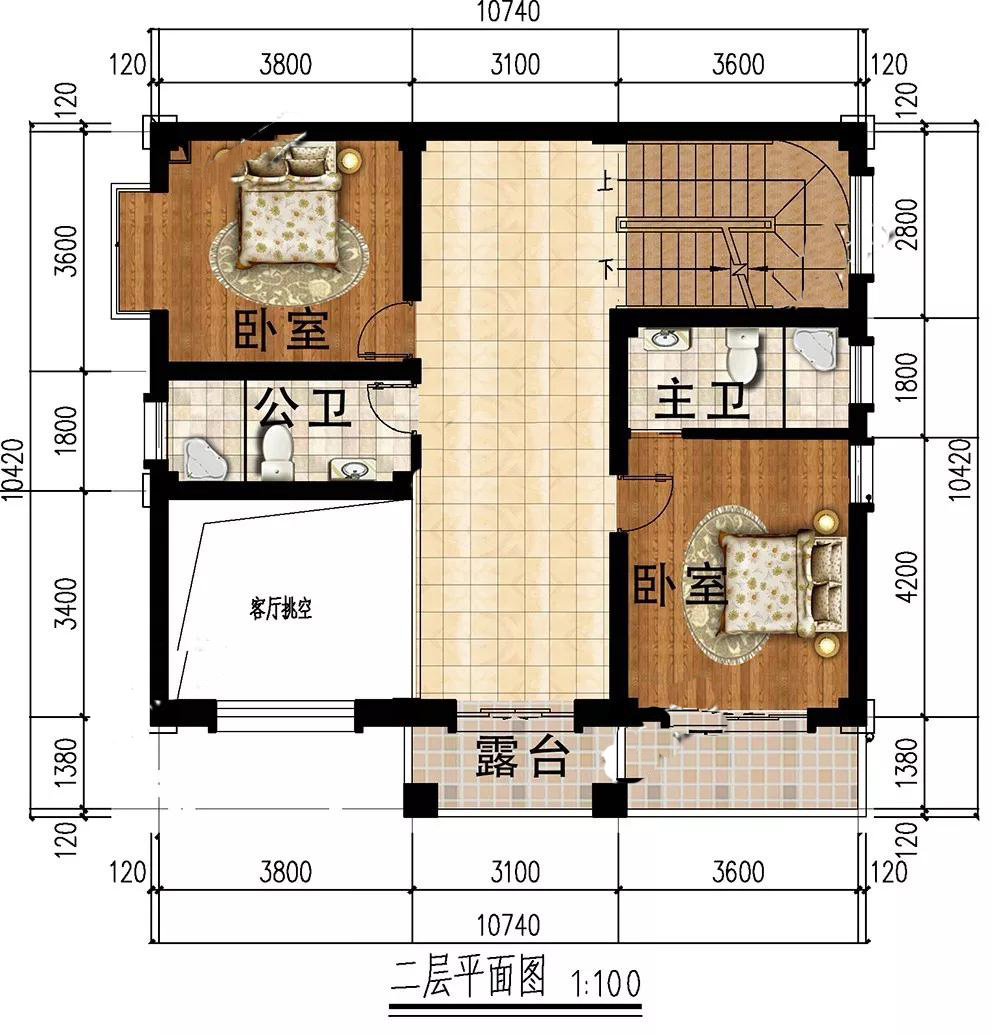 二層:挑空客廳,提高別墅檔次;2個臥室,1個連通露臺,居住環(huán)境舒適,觀景效果好。